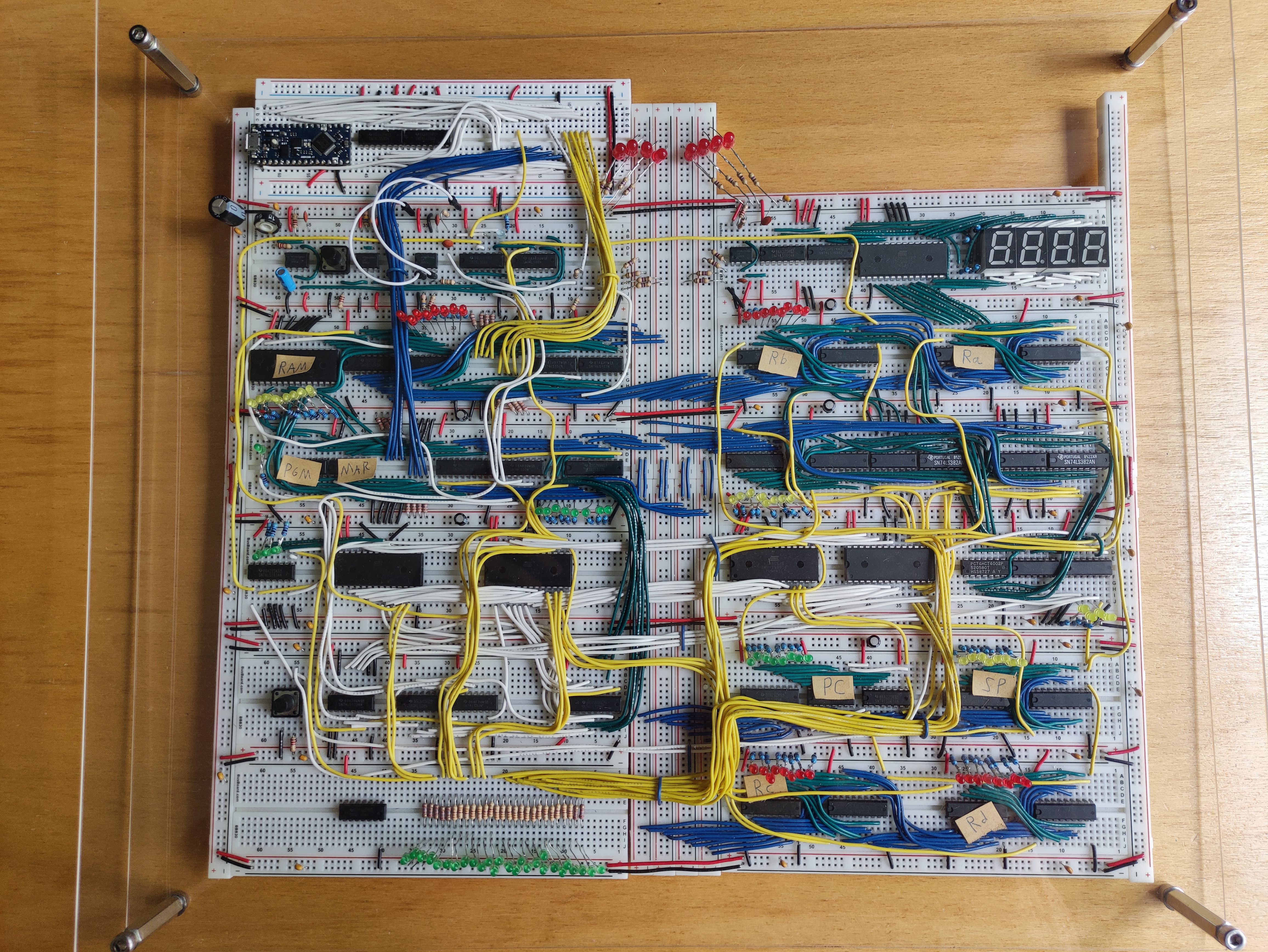 Bastelprojekt widmet sich einem programmierbaren 8-Bit Computer, aufgebaut allein aus Logikgattern. Die Idee kommt von Ben Eater , nach dessen Tutorial-Reihe der Computer nachgebaut und mit Ideen von James Bates erweitert wurde.
